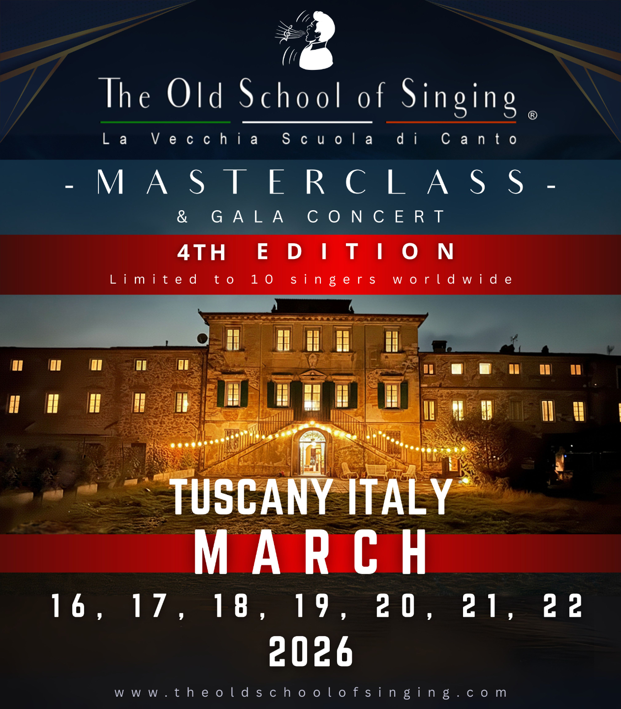 Because of overwhelming demand and the remarkable results of our 3 masterclasses in just 4 months, we are opening the 4th Masterclass Edition in Tuscany, March 2026. This is a seven-day Masterclass, followed by a Gala Concert in the historical centre of Lucca the birthplace of Giacomo Puccini.